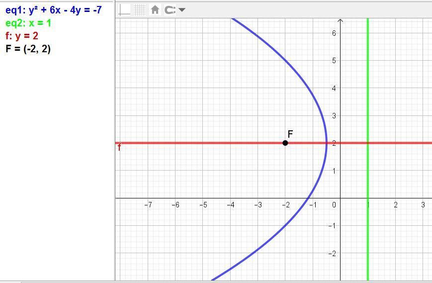 Даны координаты фокуса параболы F(−2;2), и уравнение директрисы x−1=0 или х = 1.