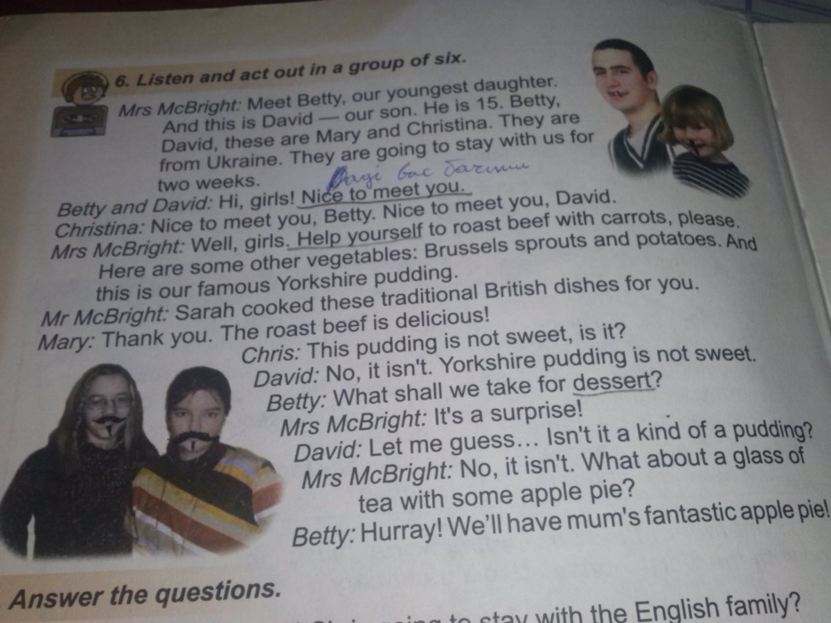 Миссис Макбрайдж: Встречайте Бетти, нашу самую молодую дочь. А это Дэвид - наш сын. Ему 15. Бетти, Дэвид, это Мэри и Кристина. Они из Украины. Они останутся у нас следующие две недели.