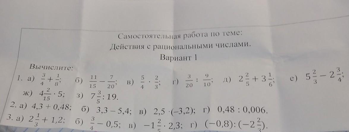 самостоятельная работа по теме действия с рациональными числами вариант 1