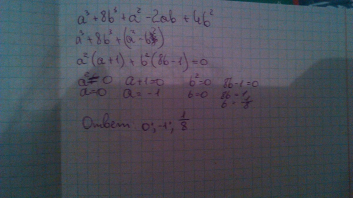 a²-2ab+4b² вот эту часть можно разложить как (a-b)(a+b) или a^2 - b^2