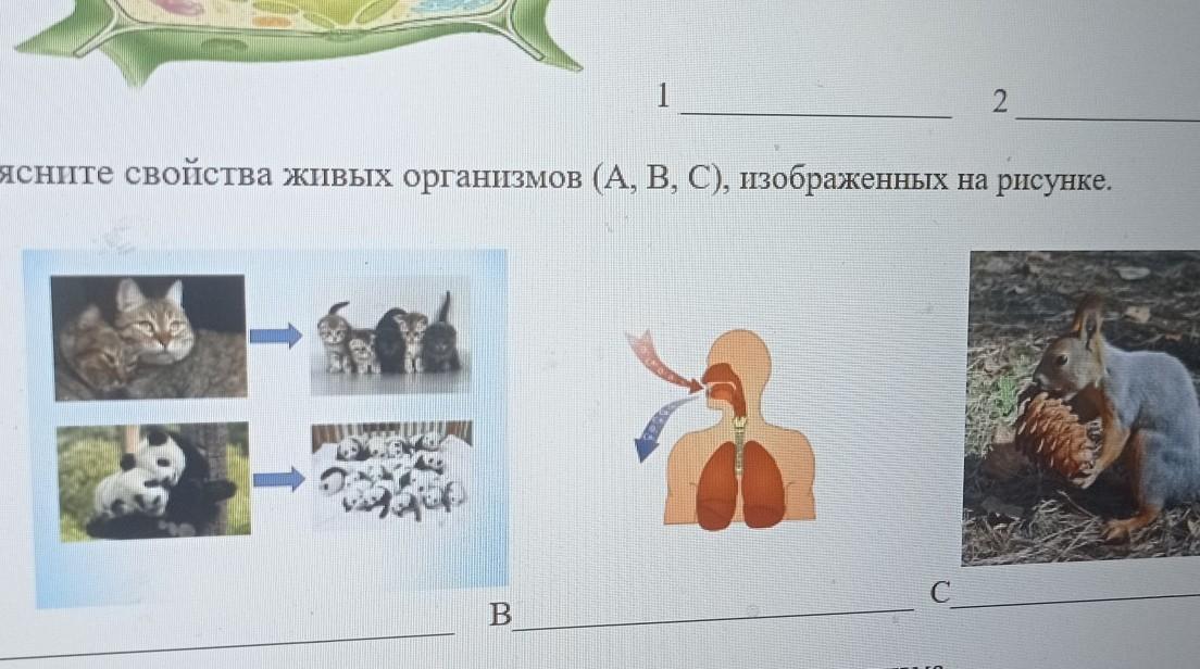 2. Объясните свойства живых организмов (А, В, С), изображенных на рисунке.