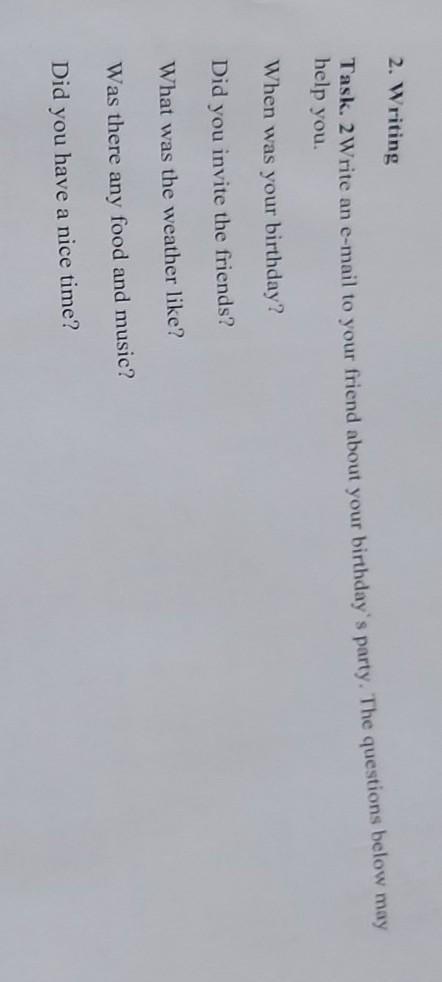 I was born on the 12th of April( this is an example, write your date of birth). It is spring and the weather is fine. Most people hold their birthday party on their birthdays. Usually, we hold my birthday party on Sunday next to the 12th of April (this is an example of writing your birthday). I invite my friends and relatives to the party. I get up early in the morning on that day. I buy everything we need for the party. My mother stays at home to clean the flat and bake a pie and cakes. Then we lay the table together, put on evening suits and wait for the guests. At about four o'clock my relatives and friends come to congratulate me and I am glad to see them. I thank my friends for coming and the presents. We have an abundant dinner on this day. Mother brings the birthday cake and I blow the candles out. We dance and sing songs, make jokes and play games. When everybody is tired, we just lie on the floor and tell stories or just listen to the music in my room. I enjoy my birthday party and my friends like this day too.