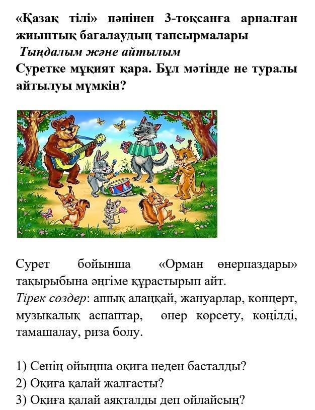Сурет бойынша «Орман өнерпаздары» тақырыбына әңгіме құрастырып айт