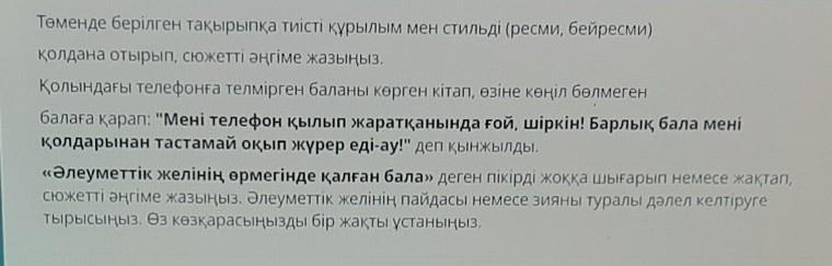 Қәзіргі заанда телефонды әр адам ұстап жүр. Олар көп уақыт ұялы желде де оырып тамақ ішуді,ұйықтауды ұмытып та қалады. Сонын кесірінен Ата-ана сы бауыры мен әпкесі балаларға уақыт бөлмейді. Телефоннын жақсы да жаманы да бар. Жақсы жері керек затты тауып,кітапті оқу,үй тапсырмасын түсінбегенде интернеттен түсініп алуға болады