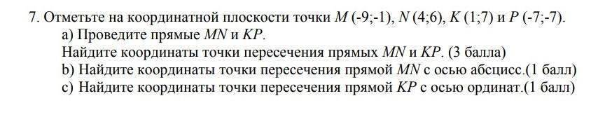 a) Проведите прямые MN и KP. Найдите координаты точки пересечения прямых MN и KP. (3 балла)