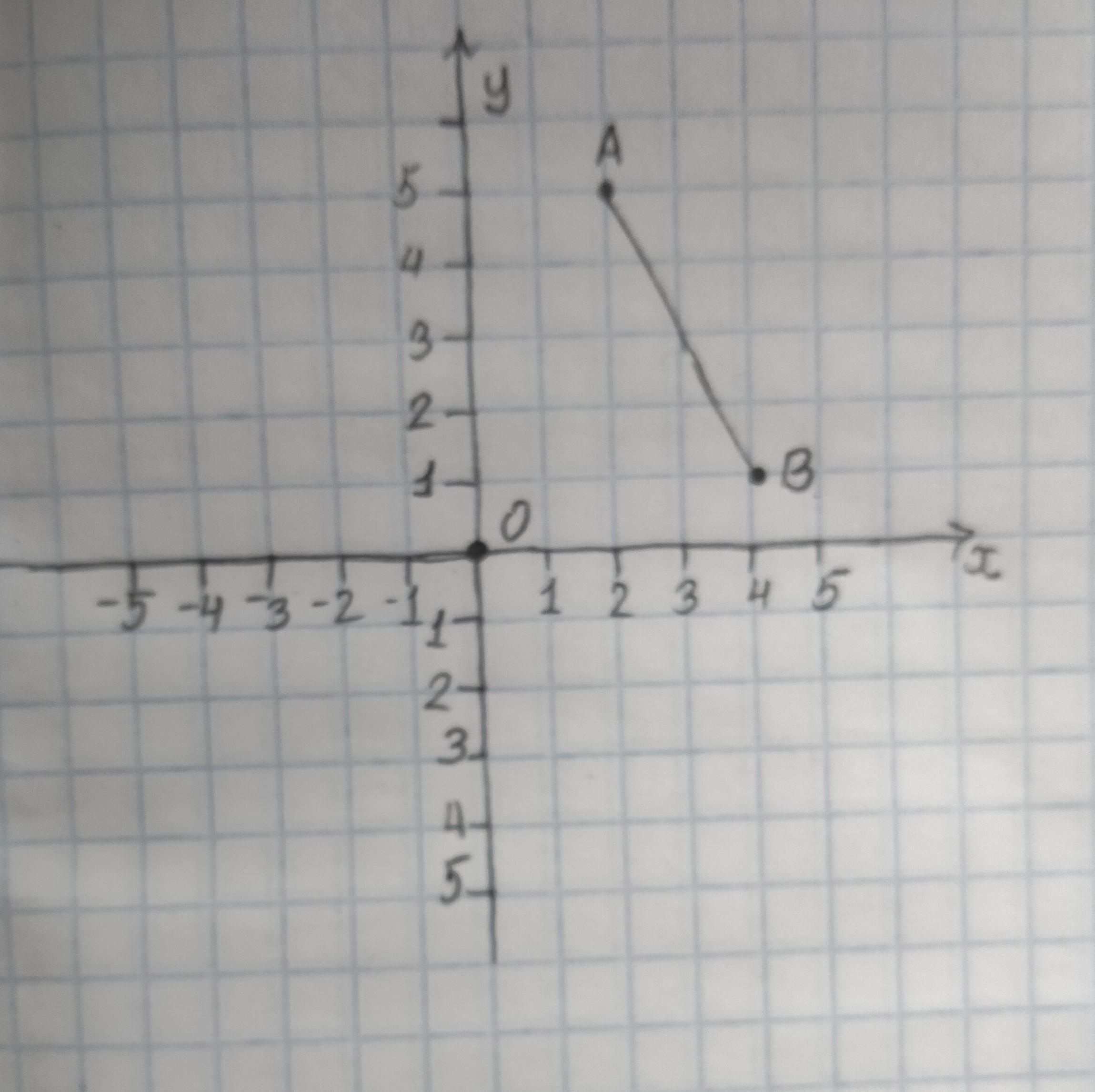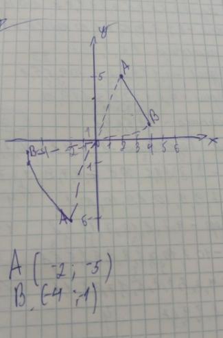 1129 Скопируйте рисунок 6.78 в записную книжку. На отрезке AB на координатной плоскости провести симметричный разрез относительно точки O (0; 0) и записать координаты его конечных точек.