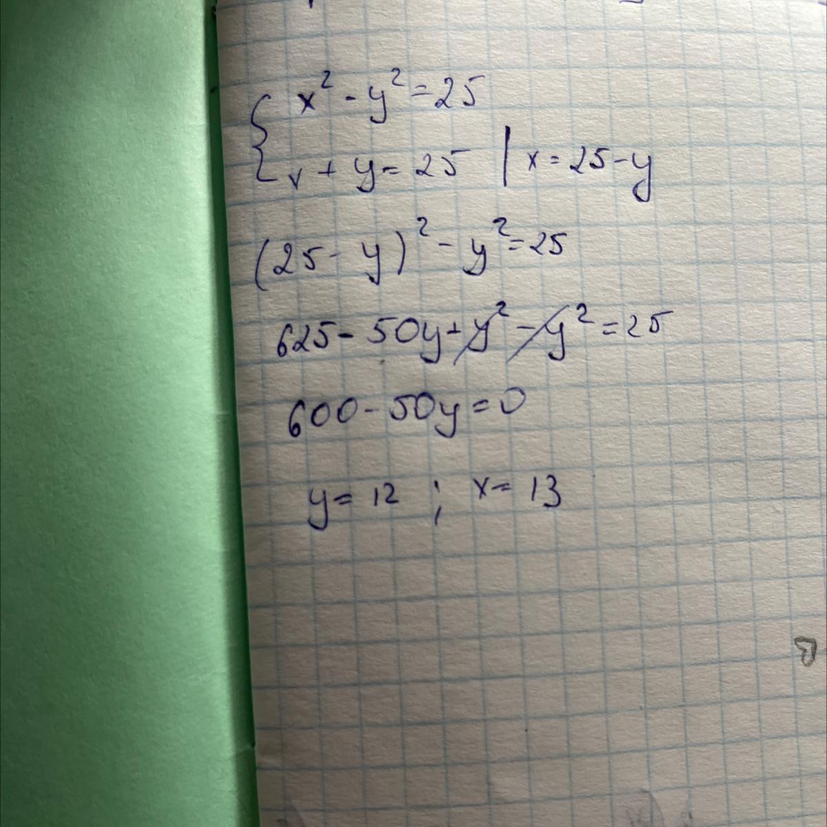 Разница квадратов двух чисел равна 25, сумма этих чисел