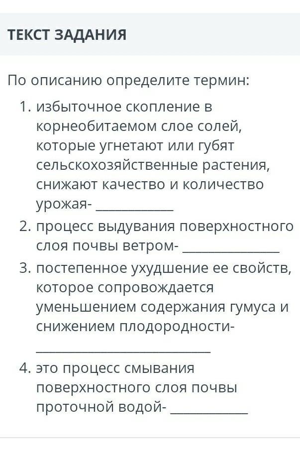 1. Засолением почвы называют избыточное скопление в корнеобитаемом слое электролитных (растворенных или поглощенных) солей, которые угнетают или губят сельскохозяйственные растения, снижают качество и количество урожая