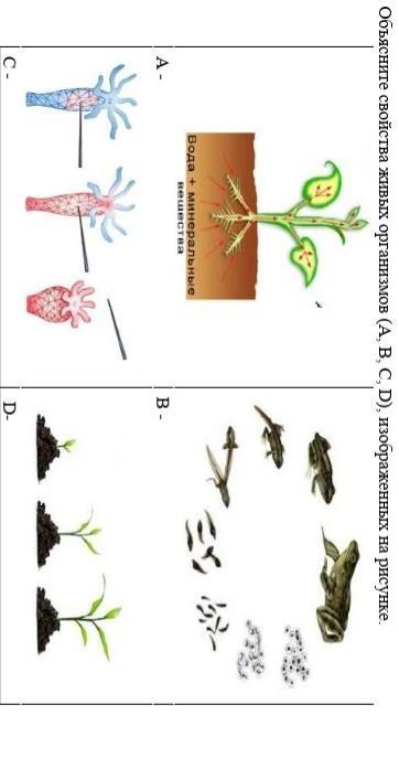 2. Объясните свойства живых организмов (А, В, С, D), изображенных на рисунке.