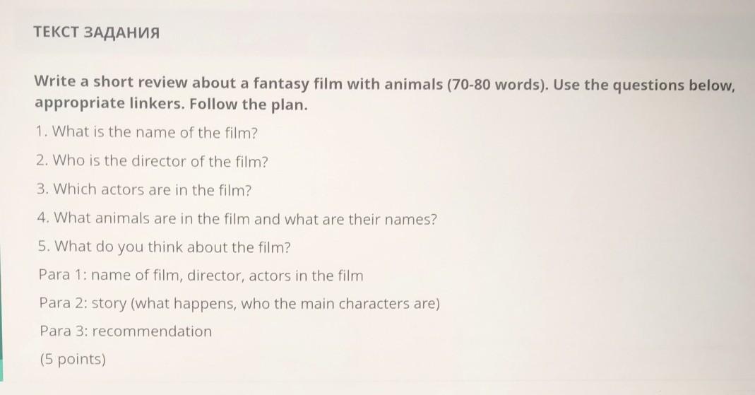 Write a short review about a fantasy film with animals (70-80 words). Use the questions below,