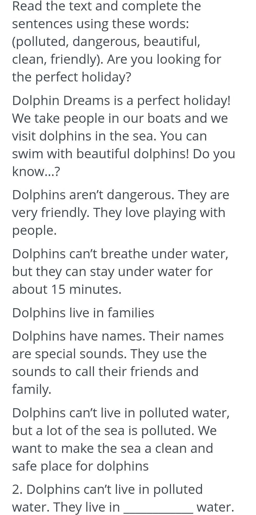 Polluted, bangerous, beautiful, clean, friendly (варианты ответа, это соч по английскому)