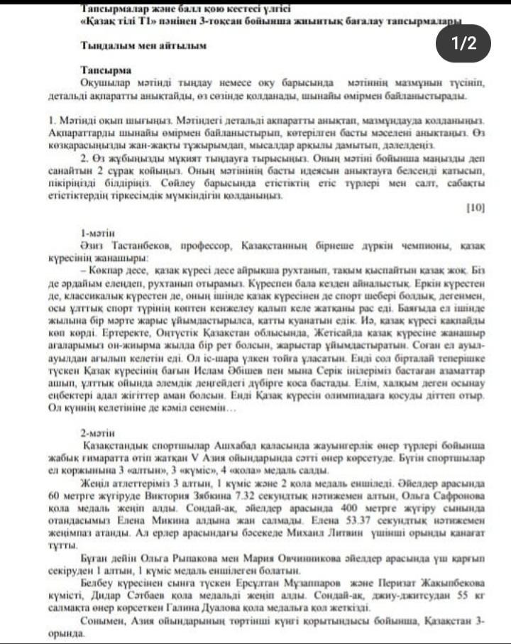 1.Мәтінді оқып шығыңыз. Мәтіндегі детальді ақпаратты анықтап, мазмұндауда қолданыңыз. Ақпараттарды шынайы өмірмен байланыстырып, көтерілген басты мәселені анықтаңыз. Өз көзқарасыңызды жан-жақты тұжырымдап, мысалдар арқылы дамытып, дәлелдеңіз.