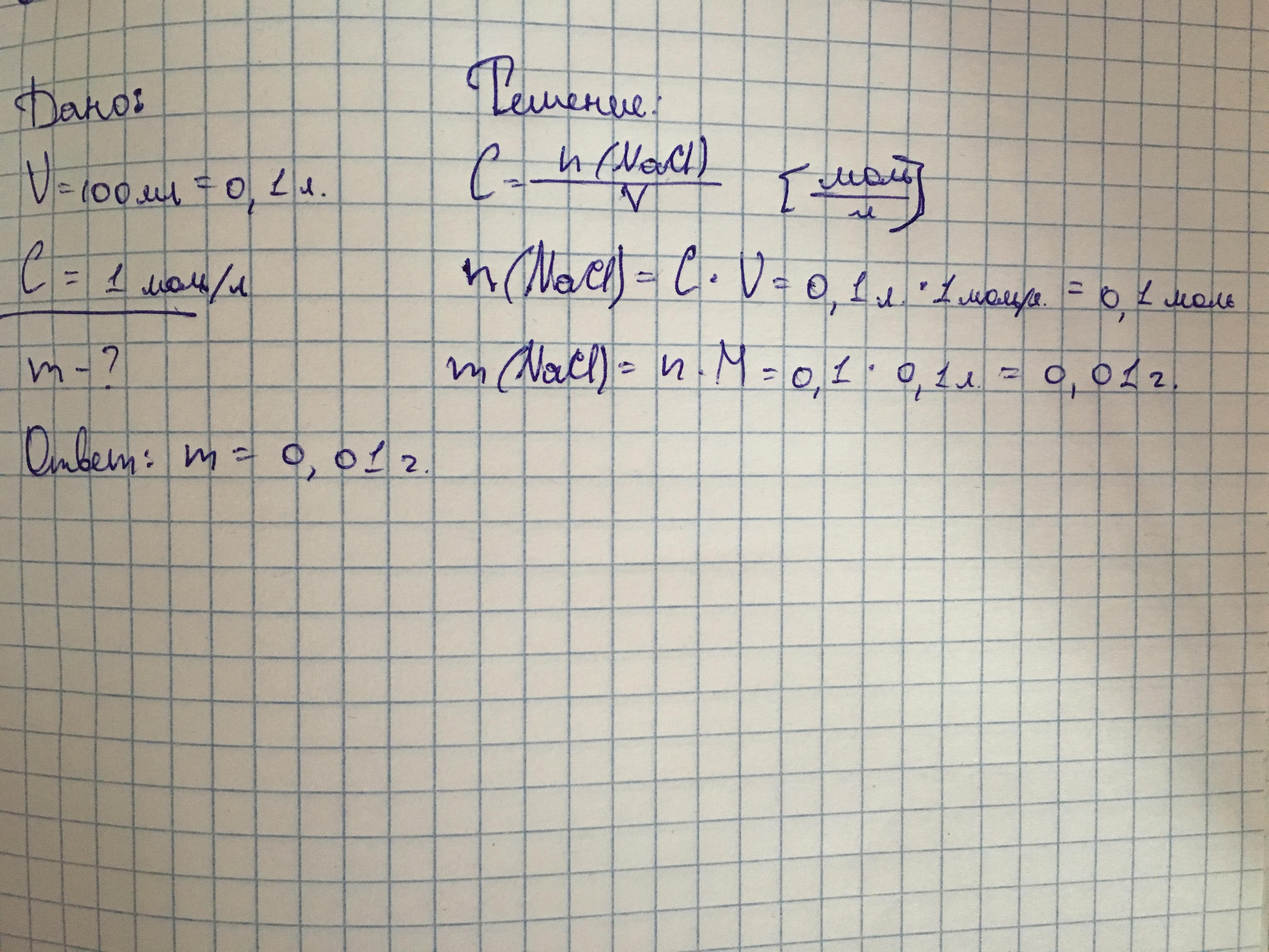 содержащегося в растворе объёмом 100