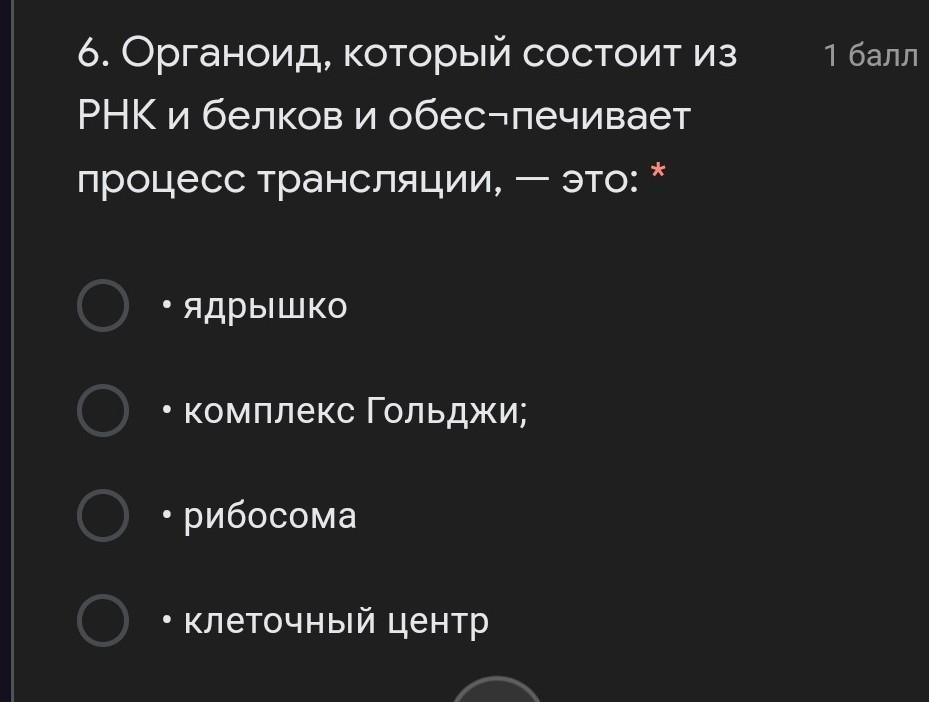 Я думаю рибосома нет я уверена что это рибосома :) у меня самой такой тест был