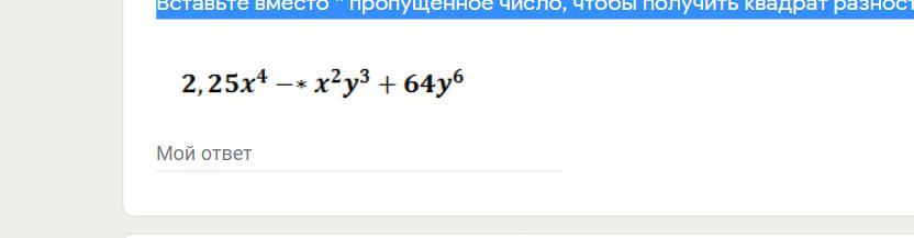 Вставьте вместо * пропущенное число, чтобы получить квадрат разности: