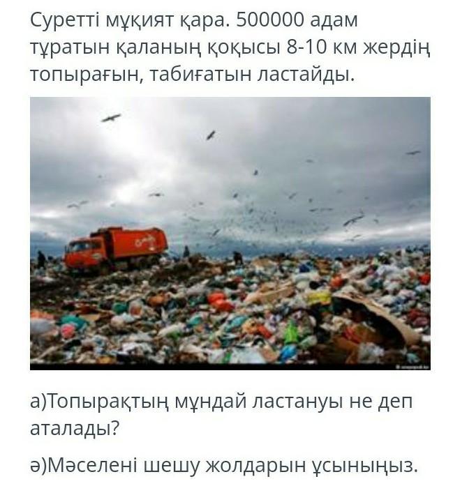 ə)Қоқысты кез келген жерге тастамау,айналамызды ластамау.Қоқысты қоқыс жəшігіне тастау.Пластикалық,химиялық т.б. қоқыстарды топыраққа тастамау.Егер сен бір топырақ жақа қоқыс тастасан оғда барлық адамдар сен тастаған жерге тастайды.Өз жерімізді ластамау керек.Себебі біз қоқыс тастай берсек жер лас болып жануарлар,өсімдіктер өле бастайды егер олар өлсе адамда өледі