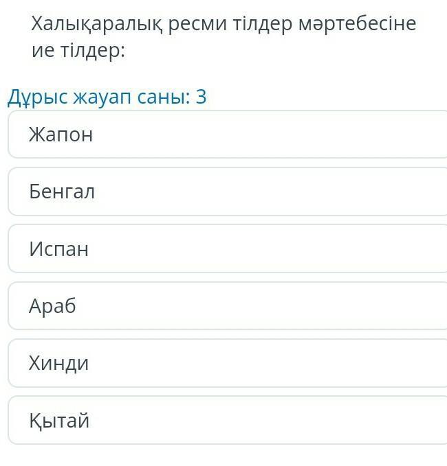 Испан,Хинди,Бенгал болады жауабы