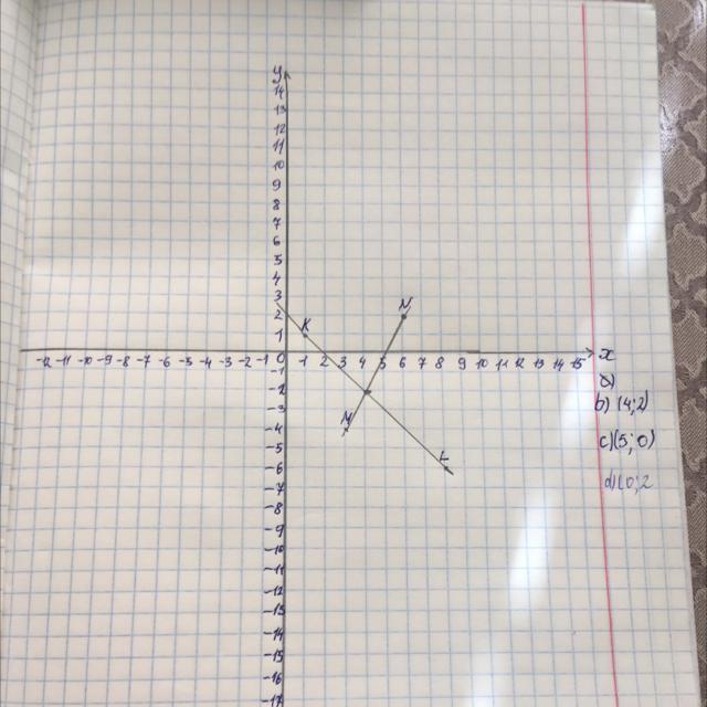 d) Найдите координаты точки пересечения прямой KL с осью ординат.