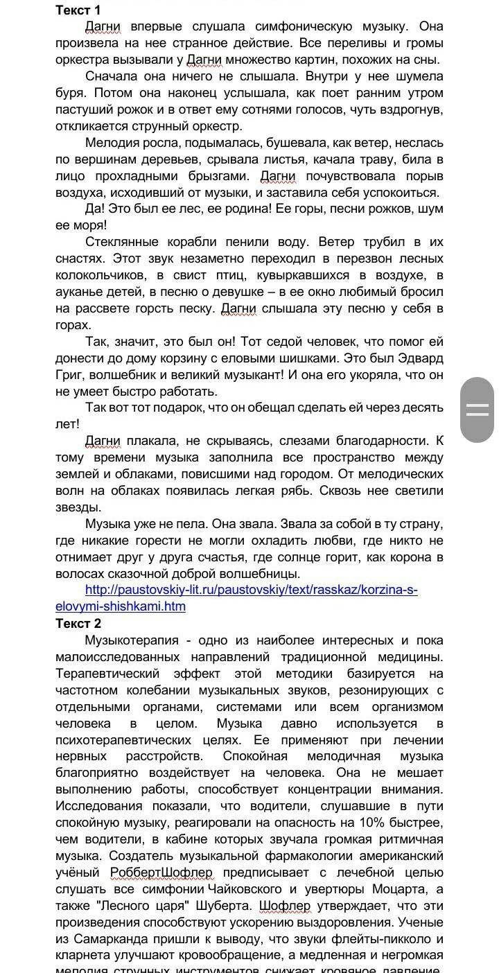 2)Как воздействует мелодия великого музыканта на героиню из текста №1? Аргументируйте свой ответ примерами из текста. 3)Сформулируйте противоречивую информацию текста №2