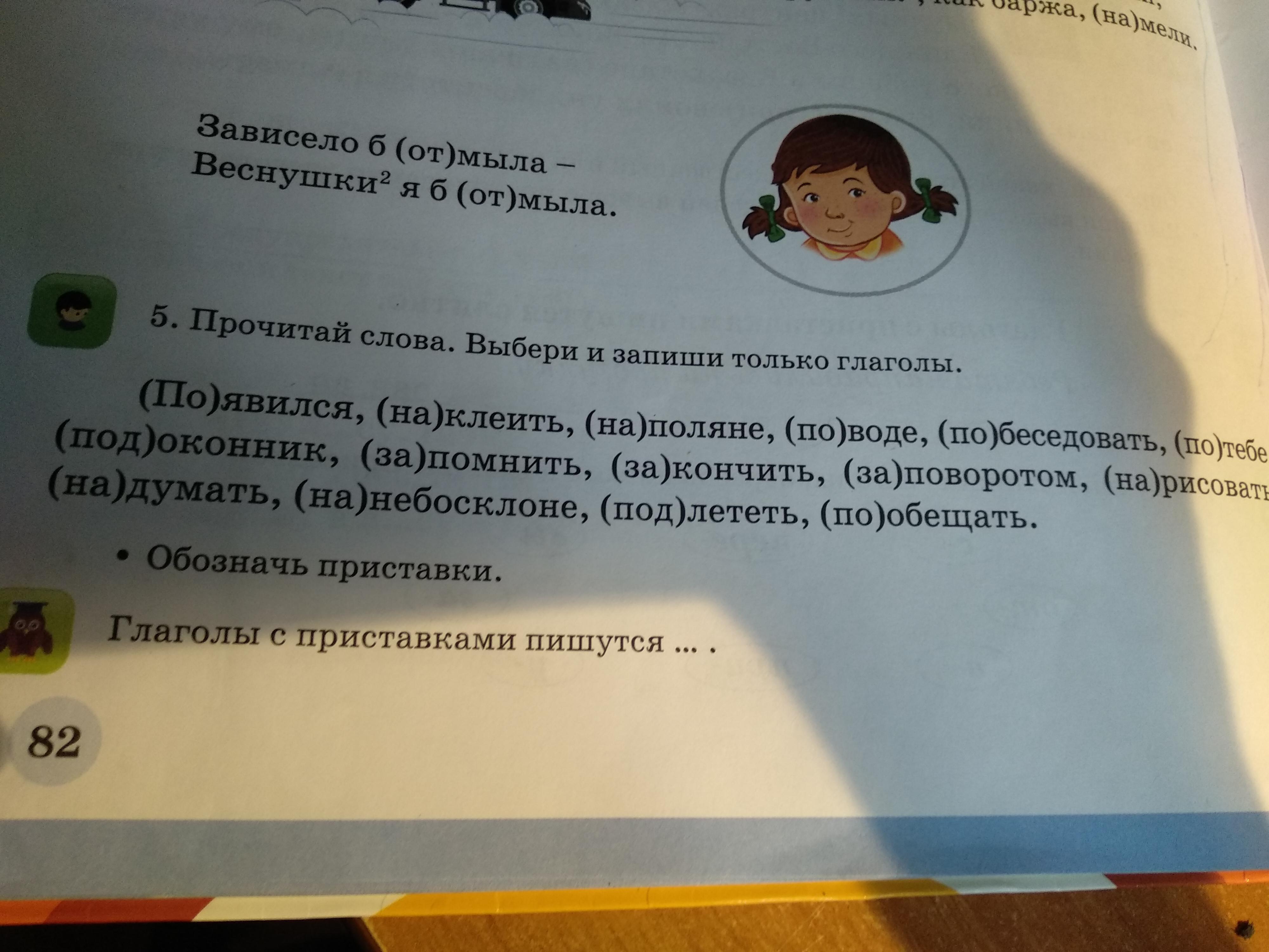 Глаголы:появился,наклеить,побеседовать, запомнить,закончить,нарисовать,нажимать,подлететь,пообещать.