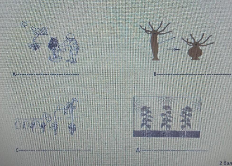 2. А. Назовите свойства живых организмов (А, В, С, D), изображенные на рисунках.