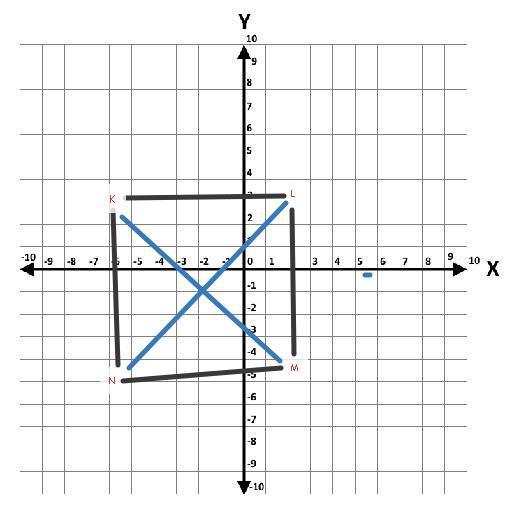 2. На координатной плоскости постройте квадрат KLMN с вершинами в точках: K(-6;3) ; L(2;3) ; M(2;-5) ; N(-6;-5) . а) Найдите координаты точки 0- пересечения диагоналей КМ и LN. б) Найти координаты точки пересечения луча NM с осями координат.