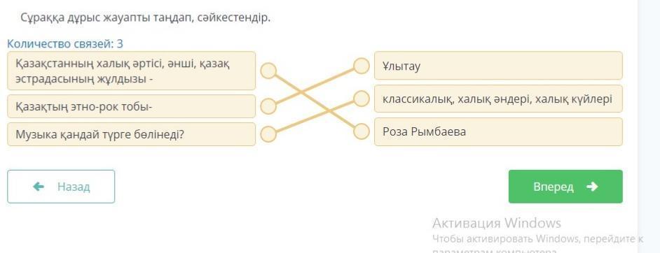 Сұраққа дұрыс жауапты таңдап, сәйкестендір