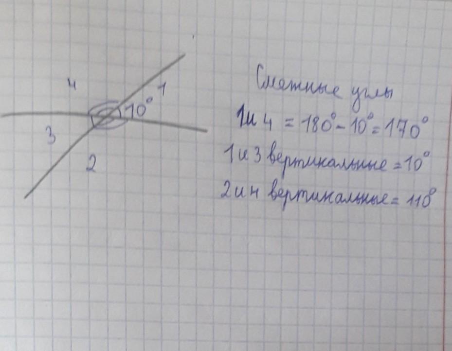 при пересечении двух прямых один из полученных углов равен 10 градусов. Найдите градусные меры остальных углов. Начертите рисунок.