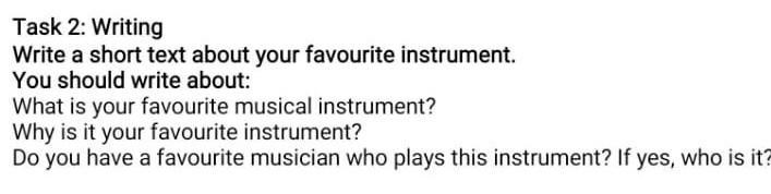 I like one wonderful musical instrument. This is a piano.I like it because it has a very beautiful and delicate sound. You can play any melody on the piano: pop, jazz, classical, etc.I know one very famous composer and musician who played the piano (piano). His name is Ludwig Van Beethoven. This is a well-known and "legendary" musician. He composed a lot of great melodies that we know to this day.