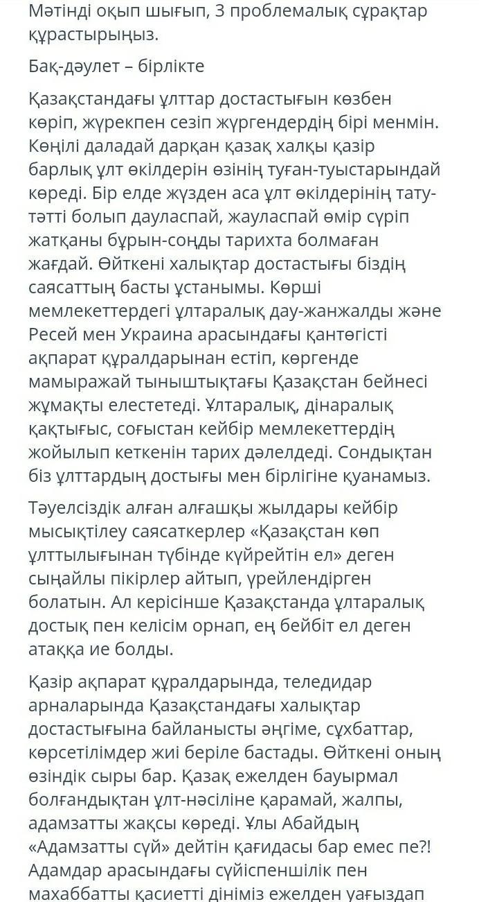 1.Қазақ халқы неге басқа ұлттармен тату тәтті өмір сүреді?