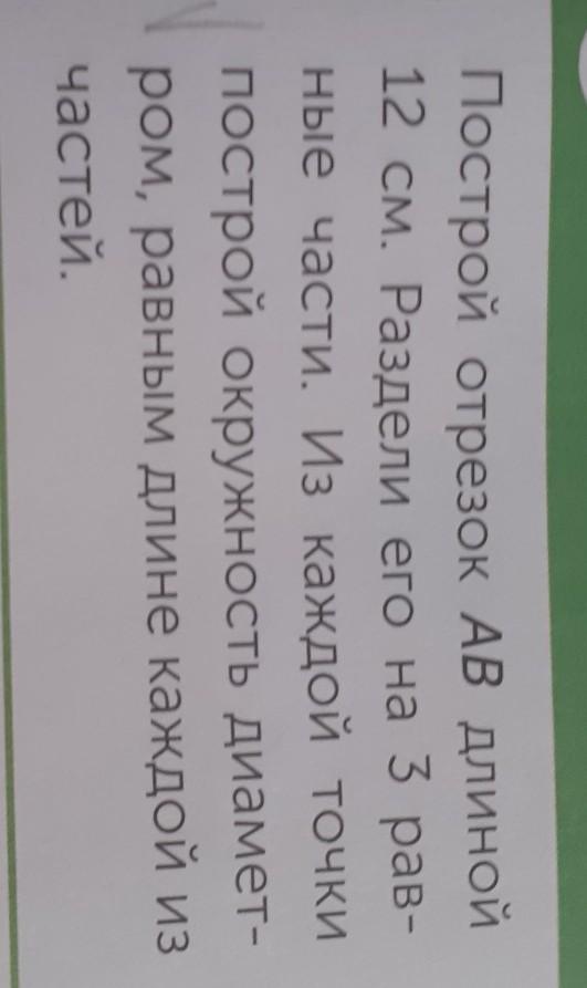 построй отрезок AB длиной 12 см раздели его на три равные части в каждой точке и построй окружность диаметром равным длине каждой из частей