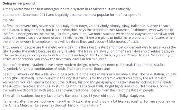 2)At first, there were only seven stations: Raiymbek Batyr; Zhibek Zholy; Almaly; Abay; Baikonur; Auezov Theatre and Alatau