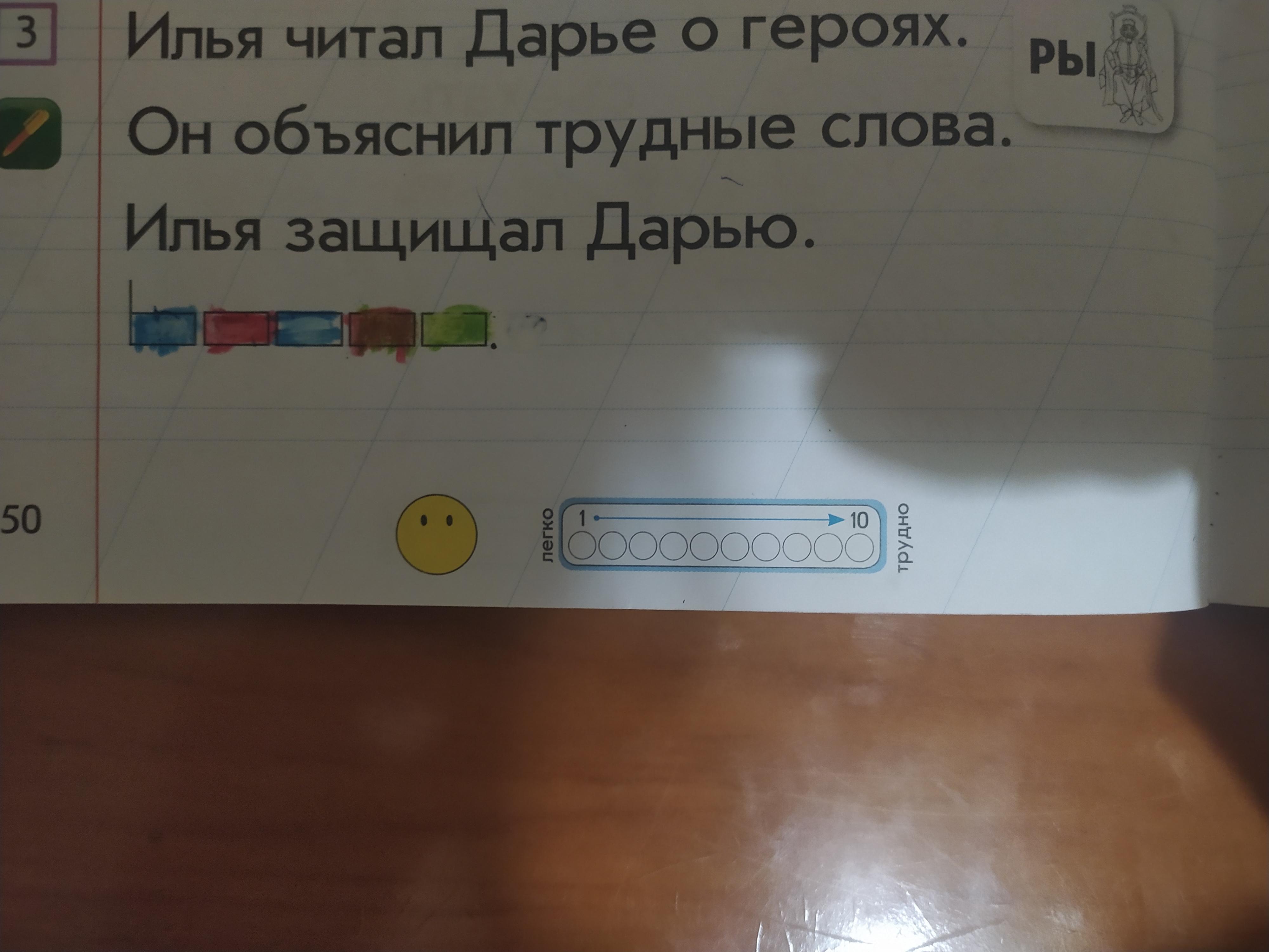 Вот видите сбоку Написано "Ры" И дальше Рисунок Это слово нужно разгадать и получится (Рыцарь) И надо сделать звукобуквенный анализ слова и Рыцарь ,букву "р "обозначить голубым цветом ,вторую буквы"ы" обозначить красным и так далее как на картинке