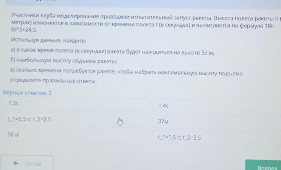 метрах) изменяется в зависимости от времени полета t (в секундах) и вычисляется по формуле 18t-