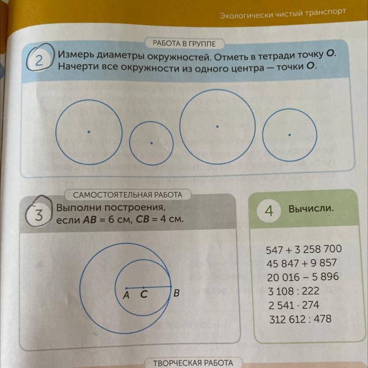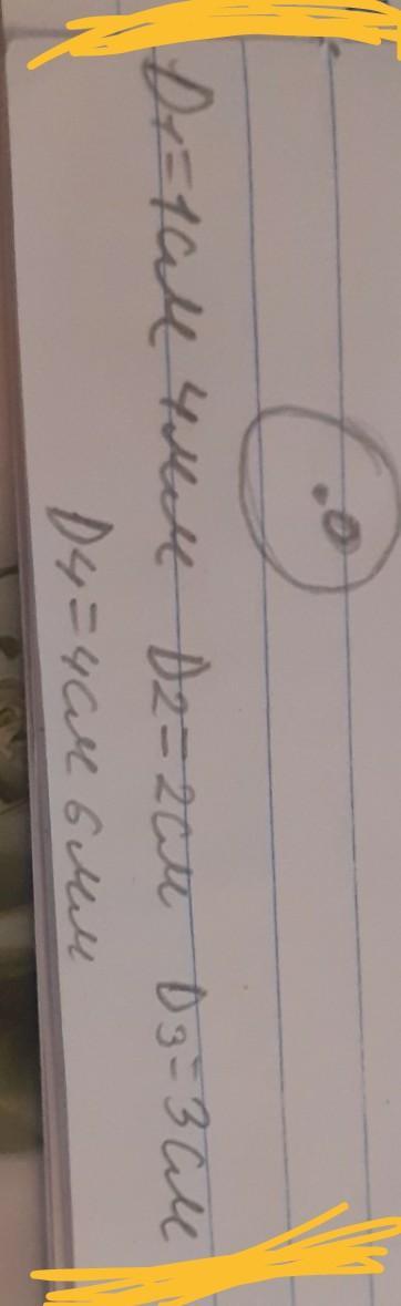 Измерь диаметры окружностей. Отметь в тетради точку 0.