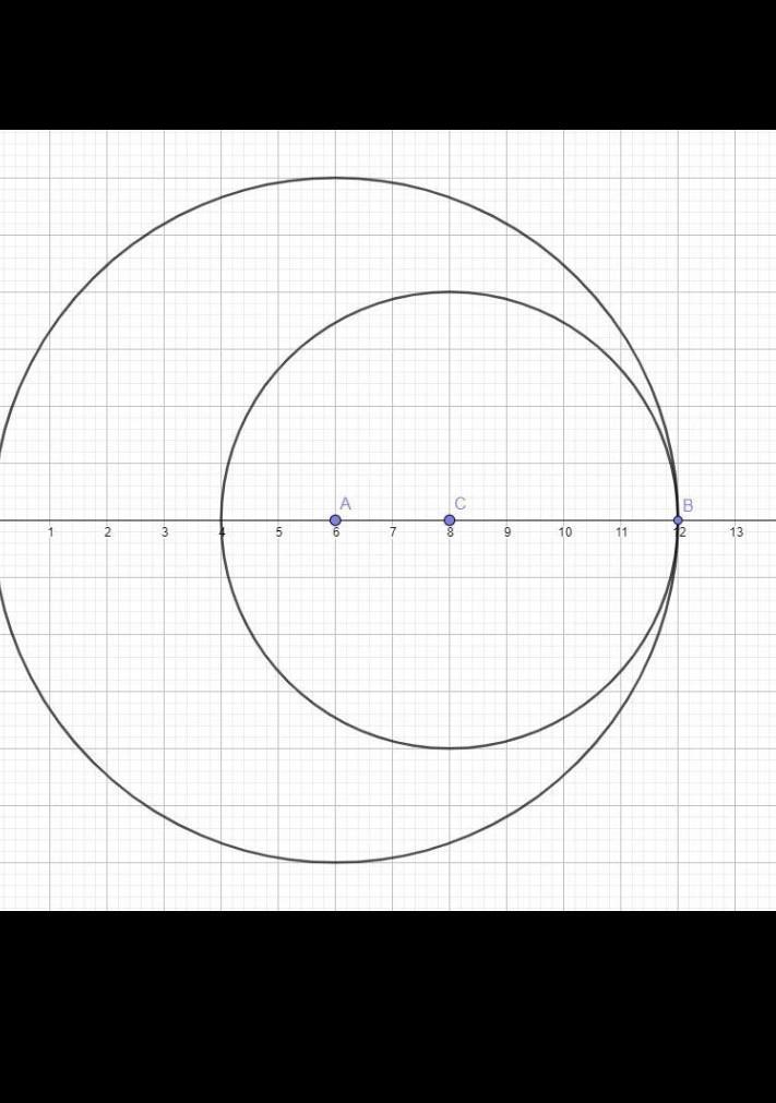 По рисунку видим, что отрезок AB является диаметром бо́льшей окружности, а отрезок BC является радиусом ме́ньшей окружности.