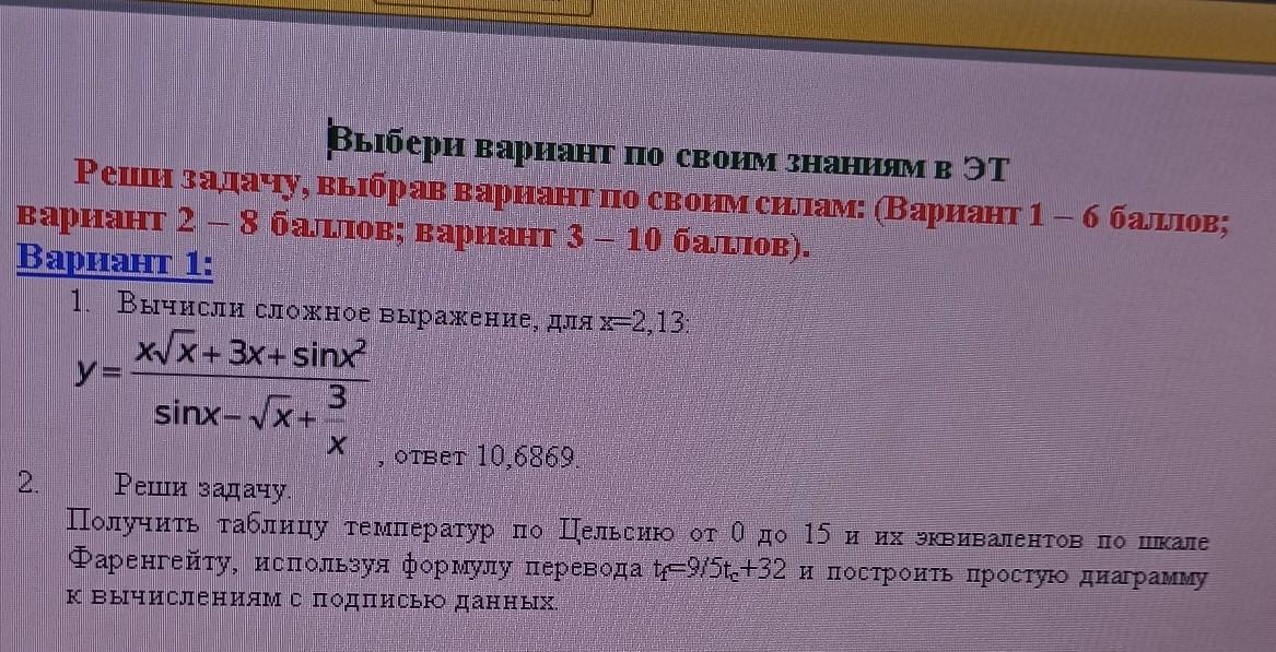 Решни задачу, выбрав вариант по своим силам: (Вариант 1 - 6 бала