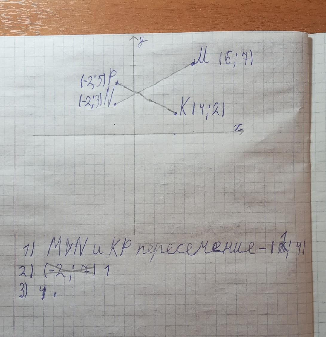 Отметьте на координатной плоскости точки М (6;7), N (-2;3), K (4;2) и P (-2;5).