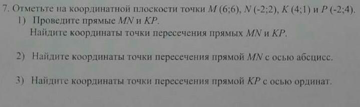 7. Отметьте на координатной плоскости точки M (6;6), N (-2;2), K (4:1) и Р(-2;4),