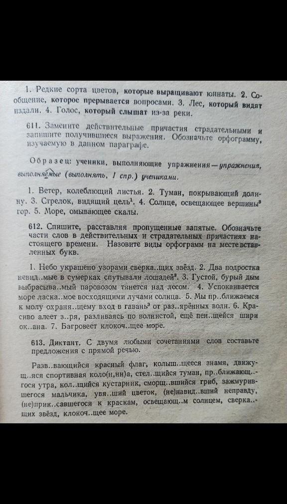 613. развивающийся красный флаг, колышущееся знамя,движущаяся спортивная колонна, стелющийся туман,приближающегося утра,колющийся кустарник,сморщившийся гриб,зажмурившегося мальчика,увядший цветок,ненавидевший неправду, не прикасавшегося к краскам, освещающим солнцем,сверкающих звезд, клокочущее море