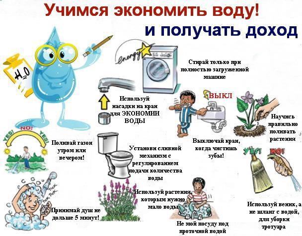 Рассмотрите рекламный щит. Определите главную и второстепенную информацию текста. Напишите памятку по экономии воды