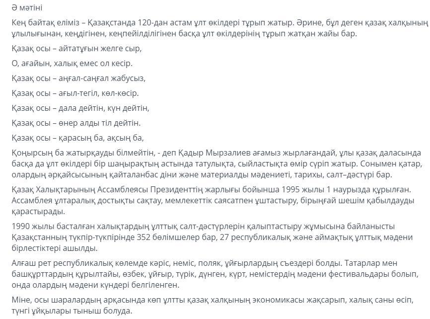 Ответ:ә мәтіні Қазақ елі қазақ халқының ерекшелігін, қонақжайлығын жырға қосқан ақын кім?