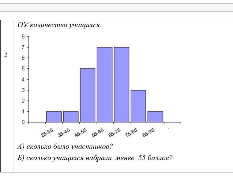 Б) сколько учащихся набрали менее 55 баллов?