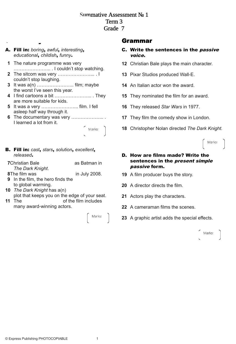 A. Fill in: boring, awful, interesting, educational, childish, funny.