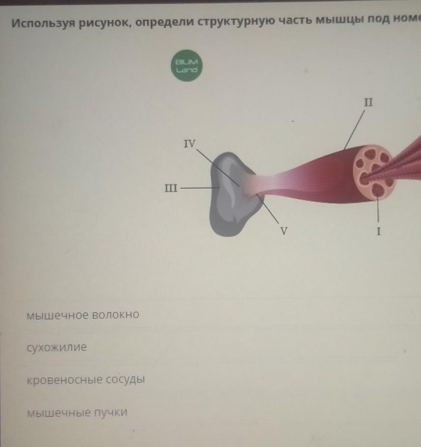 Используя рисунок, определи структурную часть мышцы под номером IV.