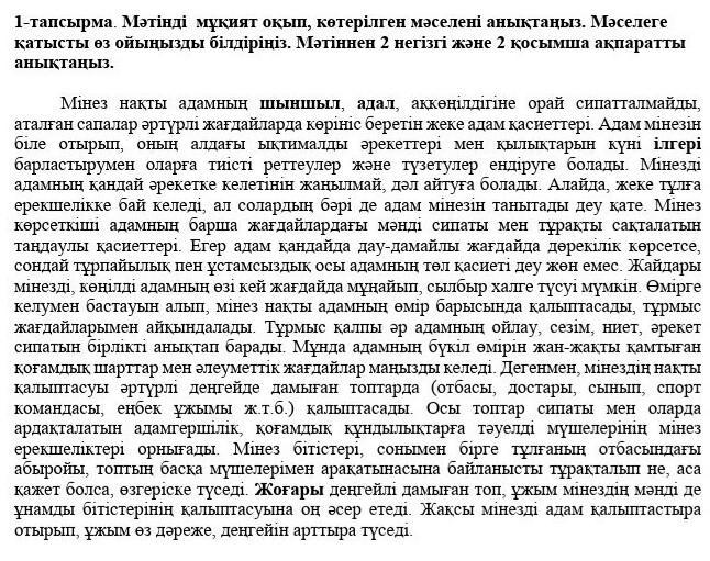 мәтінді мұқият оқып көтерілген мәселені анықтаңыз мәселеге қатысты өз ойыңызды білдіріңіз мәтіннен 2 негізгі, 2 қосымша ақпаратты анықтаңыз