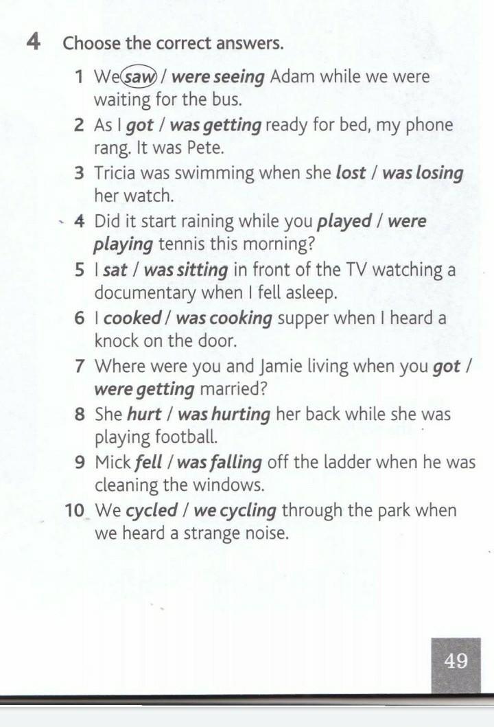 Ответ:2 was getting 3 lost 4 were playing 5 was sitting 6 was cooking 7 got 8 hurt 9 fell 10 were cycling