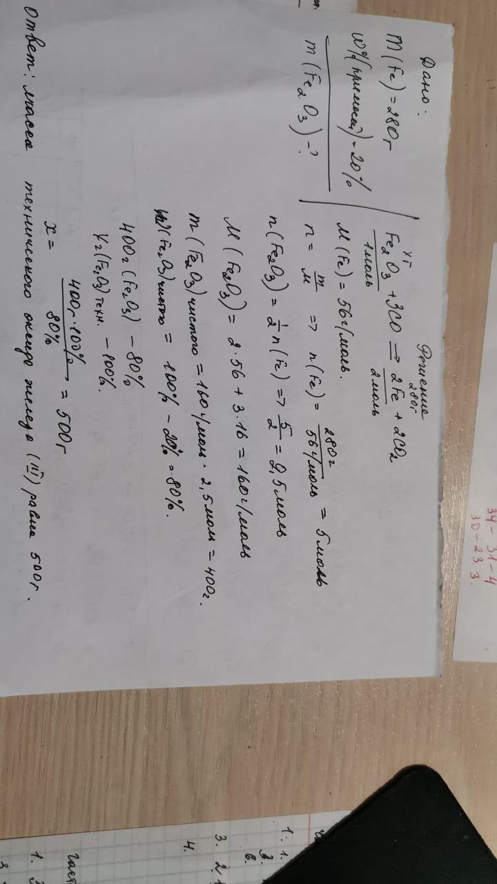 Вычислите, какая масса оксида железа (III), содержащего 20 % примесей, необходима для получения железа