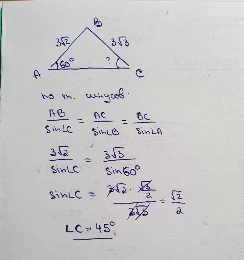 по теореме синусов:АВ/sin угла С=АС/sin угла В=BC/sin угла А
