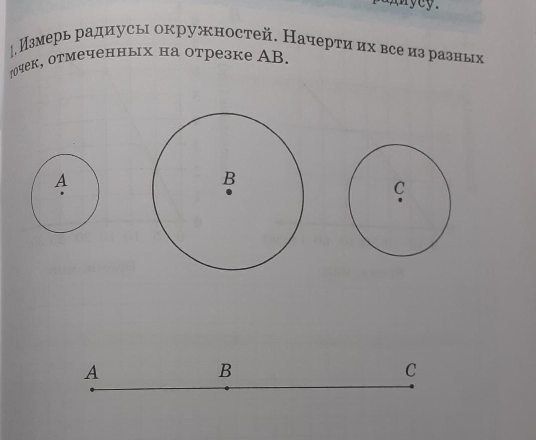 1. Измерь радиусы окружностей. Начерти с все из разных